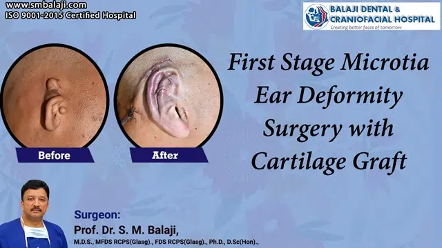 Ear Reconstruction Surgery Microtia, an external ear deformity present from birth, can pose significant hurdles in both physical and social development. This video takes you through the transformative journey of a young boy with microtia who underwent cosmetic ear surgery at Balaji Dental, Craniofacial Hospital & Research Center. Understanding the Challenge: Microtia, a condition affecting the external ear structure, can leave individuals with underdeveloped ears or complete absence (anotia). This can affect hearing, balance, and self-esteem. A Two-Stage Journey to Symmetry with Ear Correction Surgery: The video outlines the first stage of microtia correction, which involves the careful construction of an external ear framework using autogenous costal cartilage grafts. This complex process includes: Biometrics and documentation: Capturing the patient’s ear structure through photographs and measurements. Template creation: Using the normal ear as a reference to recreate a symmetrical ear. Cartilage harvesting: Harvesting rib cartilage grafts under general anesthesia. Framework construction: Sculpting the cartilage meticulously to match the template. Pocket creation: Creating a pocket in the skin to accommodate the framework. Framework insertion and wound closure: Positioning the framework carefully and suturing the skin. Second Stage: Refining the Ear with Cosmetic Ear Surgery: The second stage, scheduled for three months later, involves: Skin graft harvesting: Harvesting a skin graft from the abdomen. Framework elevation and skin grafting: Elevating the framework and placing the skin graft on the posterior pinna. Balaji Dental: Expertise in Ear Reconstruction: Balaji Dental is a distinguished center for facial plastic surgery, offering advanced ear reconstruction techniques. Our experienced team, led by Dr. SM Balaji, a globally recognized ear reconstruction surgeon with over 30 years of experience, ensures optimal results. Beyond Ear Reconstruction: A Holistic Approach: Balaji Dental provides comprehensive facial cosmetic surgery services, including: Rhinoplasty: Enhancing facial aesthetics by refining the nose. Total facial makeover: Addressing multiple facial concerns for a complete transformation. Jaw augmentation/reduction: Improving facial balance by shaping the jawline. Chin modification: Creating a harmonious chin profile. Hairline modification: Adjusting the hairline for a youthful appearance. Facial skin rejuvenation: Addressing concerns like wrinkles and hyperpigmentation. Complementary Dental Services: Balaji Dental offers comprehensive dental services, ensuring a holistic approach to patient care. Transformative Results: Ear correction surgery at Balaji Dental can restore hearing function, boost self-confidence, and enhance facial aesthetics. Ear Reconstruction Surgery for Microtia Ear Deformity CLICK HERE TO WATCH THE SURGERY VIDEO